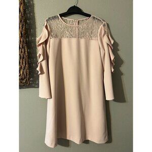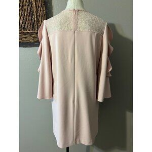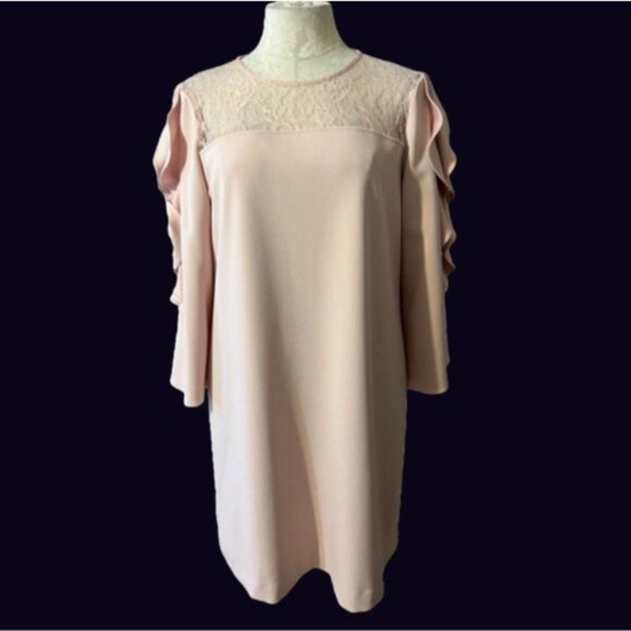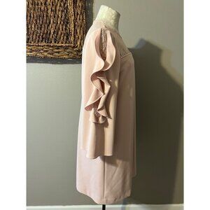 Tahari Levine Dress Pink 10 Ruffle 3/4 Sleeve Stretch Shift Career Church