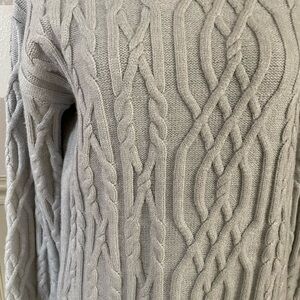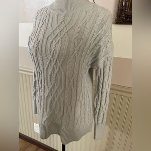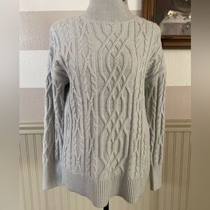 Tahari Light Gray Cable Knit Moc Neck Sweater size Medium New