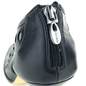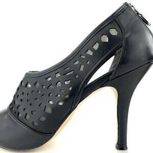 🪲 Tahari Lilith Black Stiletto Heels Sz 8.5 Open Toe Leather Laser Cut-Out Accent