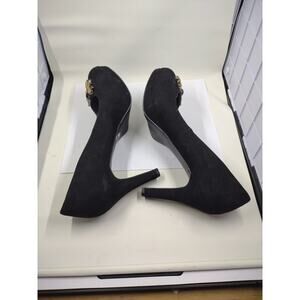 Tahari Lina Black Suede Leather High Heel Almond Toe Platform Pumps Women's Sz 9