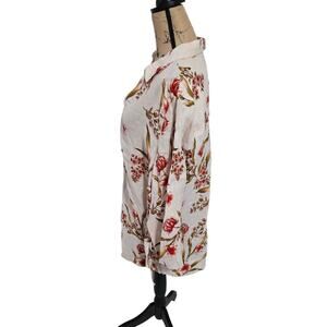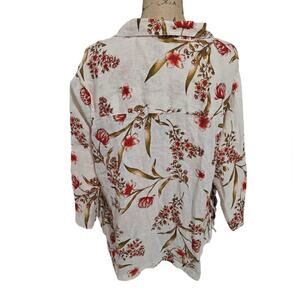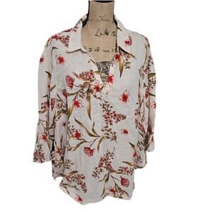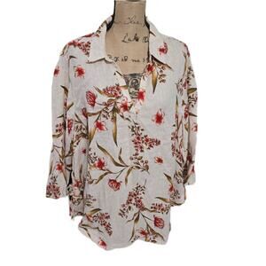 Tahari Linen Beige and Red Boho Floral Tunic Plus Size 2X 3X New!