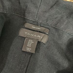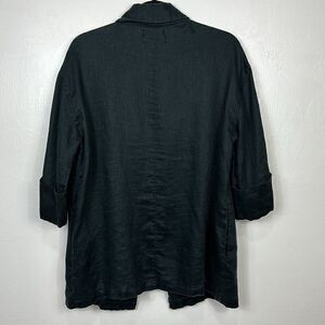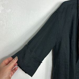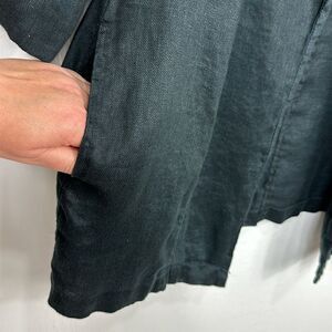Tahari Linen Black 3/4 Sleeve Open Front Jacket With Pockets Size M