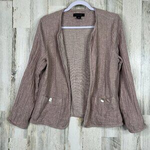 Tahari Linen Blend Gauze Cardigan Shirt Top Women Size M Medium Open Front Beach