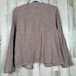 Tahari Linen Blend Gauze Cardigan Shirt Top Women Sz M Open Front Beach