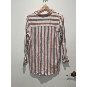 Tahari White Linen Blend Roll Tab Striped Coastal Button Up Tunic Women's Size M