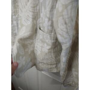 Tahari tan white leaf nature print open long sleeve linen blend blazer in good condition. Front pocket lightweight breathable material