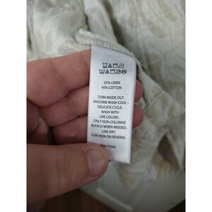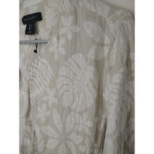 Tahari Linen Blend White Brown Open Long Sleeve Leaf Print Pocket Blazer Size L