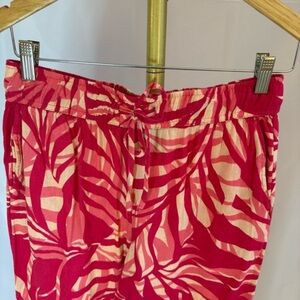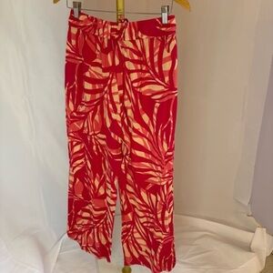 Tahari Linen Blend Womens Red Tropical Print Wide Leg Pants size Small vacation