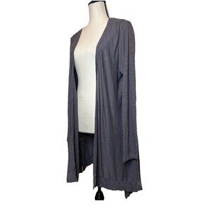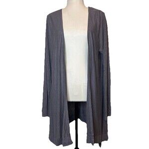 Tahari Linen Brown Open Front Cardigan Large Minimalist Long Boho Women