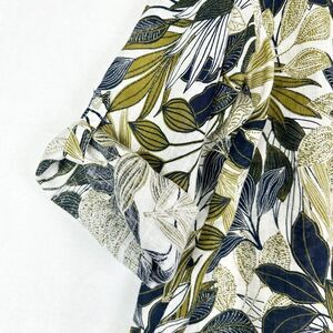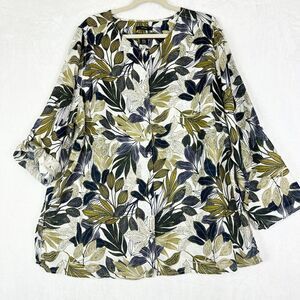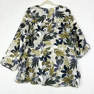 Tahari Linen Button Up Top Size 2X Leaf Print Tropical Vacation Coastal