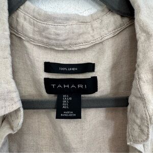 Tahari Linen Cream Long Sleeve Longline Button Front Beach Boho Blouse Top