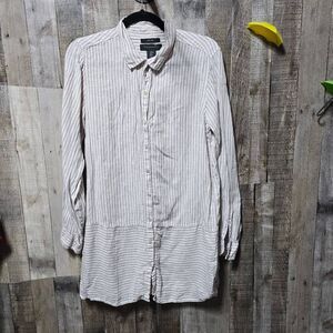 Tahari Linen Cream and Pink Stripe Button Up Tunic Mini Dress