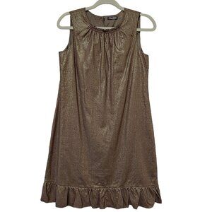 Tahari Linen Dress Womens Size 4 Bronze Metallic Knee Length Party Dress Ruffle