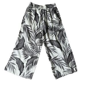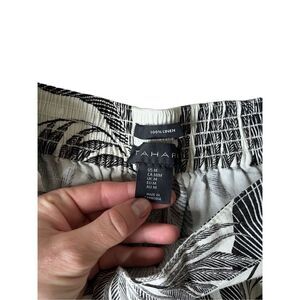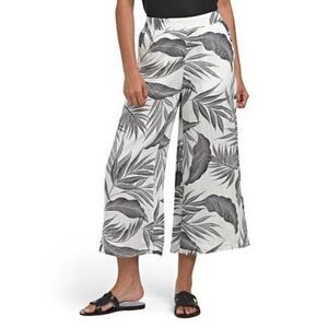 Tahari Linen Flat Front Cropped Wide Leg Pants size M Mojave Palm Cream Black Pull On