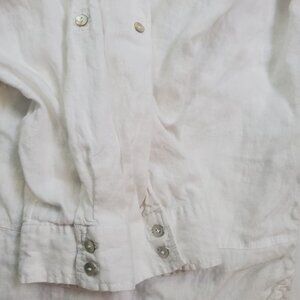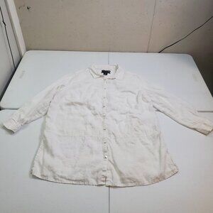 Tahari Linen Long Sleeve Button Down Top Slit Side Women's Size 1X. In good pre-owned condition. Please see all pictures for more details.