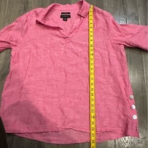 Tahari Linen Shirt Blouse Women's Plus Size 1X Pink Top Mother Of Pearl Buttons