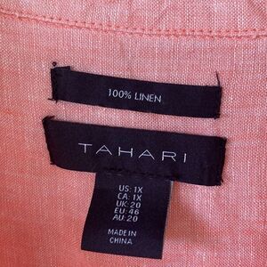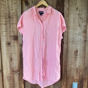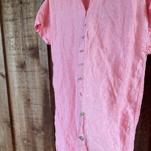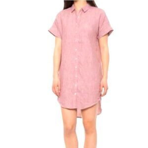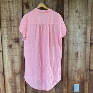 Tahari Linen Short Sleeve Button Down High Low Shirt Dress- Salmon