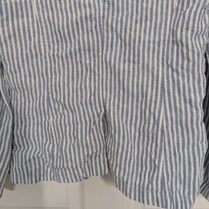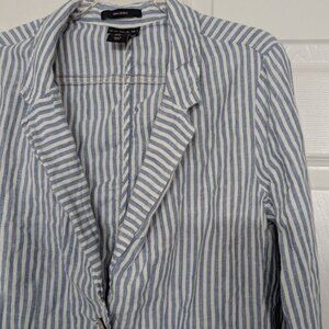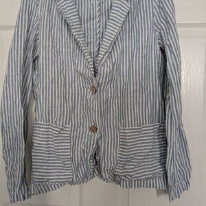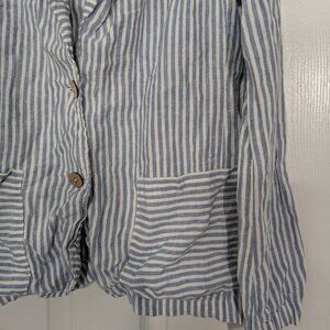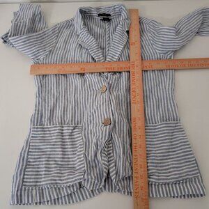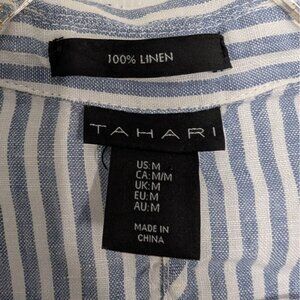 Tahari Womens 100% Linen Blue Stripe Lightweight 2 Button Blazer Jacket Size Medium