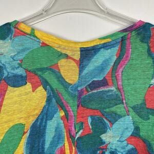 Tahari Linen Top Size 1X Vibrant Multicolored Tropical Beachy Hawaiian Vacation