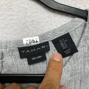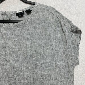 Tahari Linen Top Womens SP Gray Back Buttons Oversized Textured Boxy