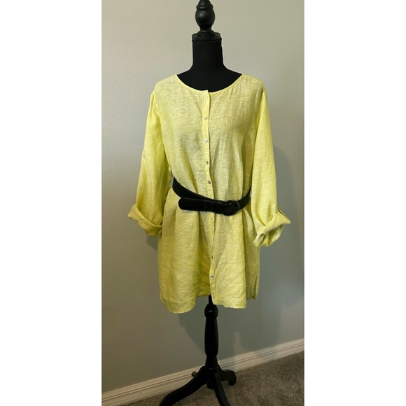 Tahari Linen Tunic Shirt size 1X, Key Lime Green Button Down.