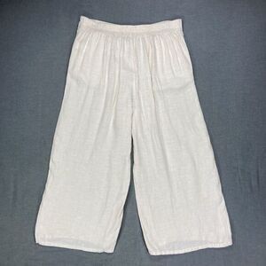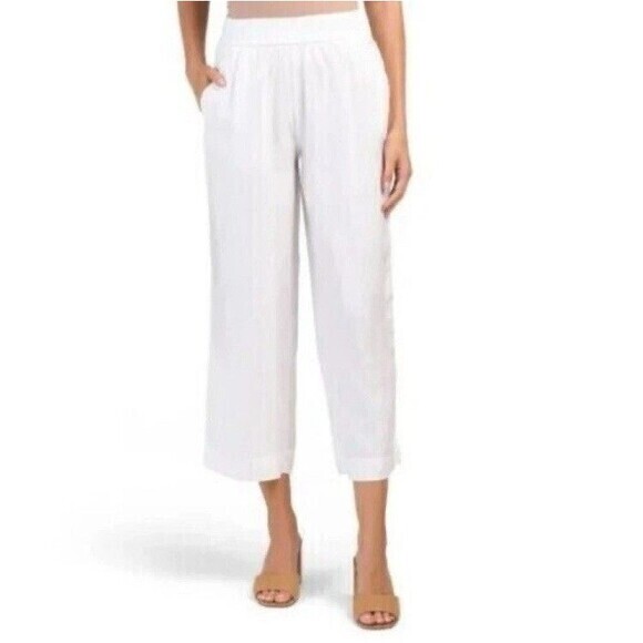 - Description: Tahari Linen Wide Leg Cropped Pants Women XL High Rise Pockets Cottage Core Boho