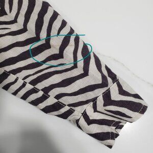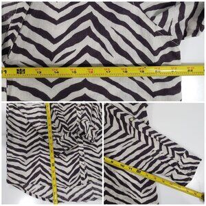 Tahari Linen Zebra Print Button Up Roll Tab Sleeve Office Sahari Boho Size S