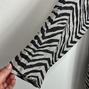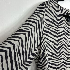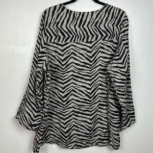 Tahari Linen Zebra Print Roll Tab Sleeve Button Down Top Tunic Size 2X