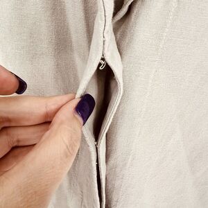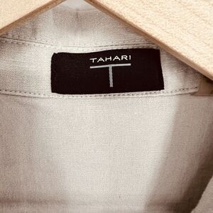 Elevate your wardrobe with this stylish Tahari jumpsuit, perfect for any occasion. The sleeveless design and beige color make it a versatile addition to your collection. The jumpsuit is made of a high-quality linen blend material, ensuring both comfort and durability.