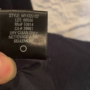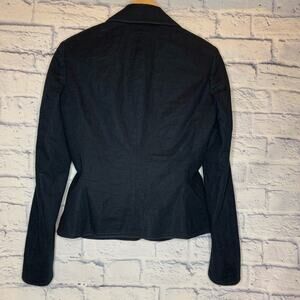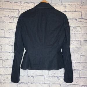 Tahari Linen/Cotton Blazer in navy blue, great condition minimal wear. 3 front buttons and 2 front pockets. Previously Worn/Washed. Accent stitching around pockets, cuffs, lapels and edging.
