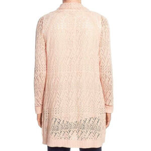 Tahari Long Cardigan SP Shimmer Blush Pink Open Crochet Knit Sweater Chic NWT