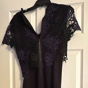 Falls below the knee but above the ankle. The lace detailing and V-neck design give it an elegant touch!