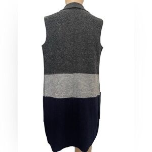 Tahari Long Gray Sleeveless Vest Wool Blend Pockets Size Large