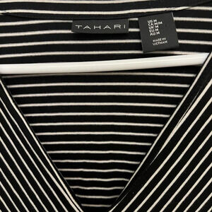 Tahari Long Sleeve Black and White Striped Shirt Faux Wrap Size Medium