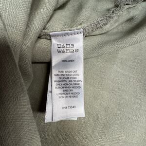 Tahari Loose Boxy Pullover Top Women Medium 100% Linen 3/4 Sleeve V-Neck Green