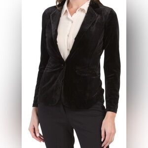 Tahari Luxury Black Velvet Soft One Button Stretch Blazer