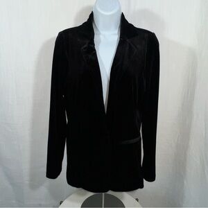 Tahari Luxury Black Velvet Soft One Button Stretch Blazer Size M