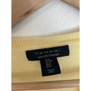 Tahari M 100% 2 Ply Cashmere Sweater Butter Yellow Pale Crew Pullover