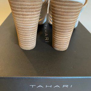 Tahari Makailyn Cream Leather Chunky Heel Sandal - Size 6M - Excellent Condition
