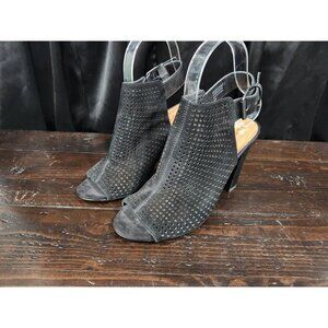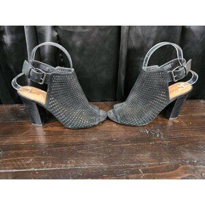 Tahari Margaret 2 Black Leather Peep-Toe Block Heels/Sz. 6M