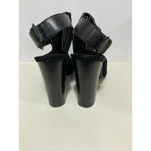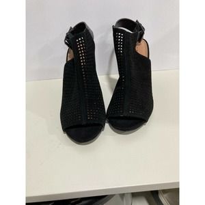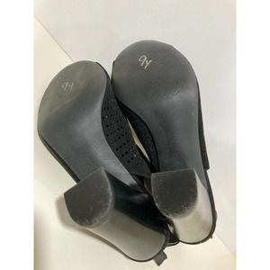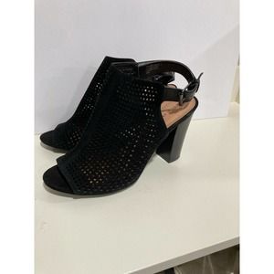 Tahari Margaret 2 black suede cut out peep toe sling back block heels 8m