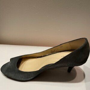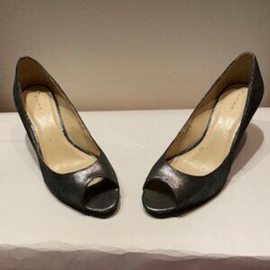 Tahari Marie Leather Pumps Gray Shimmer Peep Toe 2.5” Heel Size 8.5 M