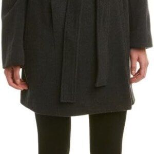 The T Tahari Marla Coat is a sophisticated wrap-style outerwear piece known for its dramatic oversized shawl collar and self-tie belt closure. Crafted from a wool blend, it offers both warmth and elegance. The coat features slit pockets at the hips and a curved hem, with an approximate length of 35 inches.