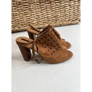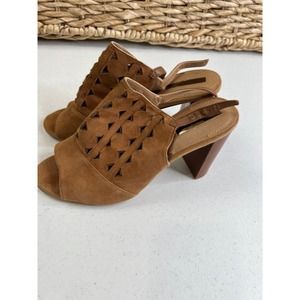 Tahari Marvel Sandals Size 23m Maple Brown Block Heel Suede Cutout Sling Back
