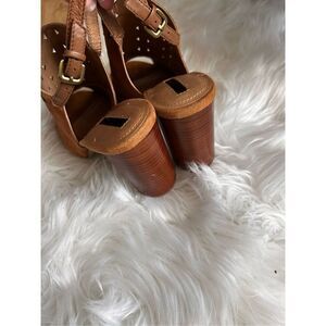 Tahari Marvel Sandals Size 8.5 Maple Brown Block Heel Suede Cutout Sling Back