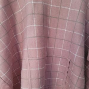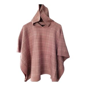 Tahari Mauve Ivory and Taupe Window Pane Plaid Poncho Syle Hooded Pullover Swtr