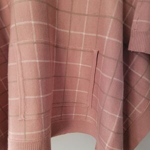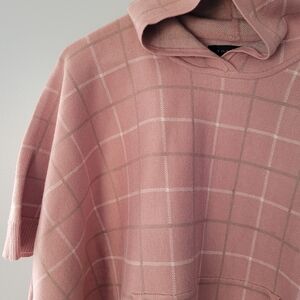 Tahari Mauve Ivory and Taupe Window Pane Plaid Poncho Style Hooded Pullover Sweater
