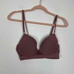 Tahari Mauve Push Up Lace Trim Raw Hem Bra Size 36C