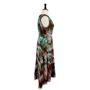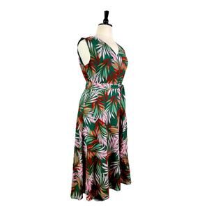 Tahari Maxi Dress V-neck Tie Waist Chiffon Green Tropical Leaf Women’s Size 16