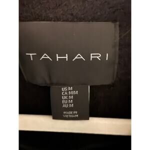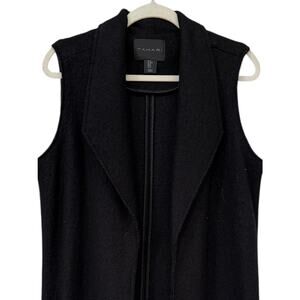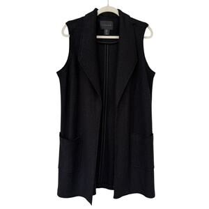Tahari Medium Black Nubby Knit Longline Sleeveless Vest with Collar Pockets